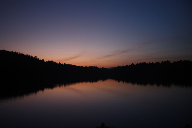 当我们终于到达营地时,西边的天际唯留了一抹残红,这丝毫阻挡不了雨肥和红线摄影创作的热情。他们飞快地各自搭好帐篷,趁着我还在研究找出外帐的正反面光景,他们已然奔向湖边,支起了三角架,快门声嚓,嚓,嚓,嚓 在静悄悄的林间已经连成一片。。。。。